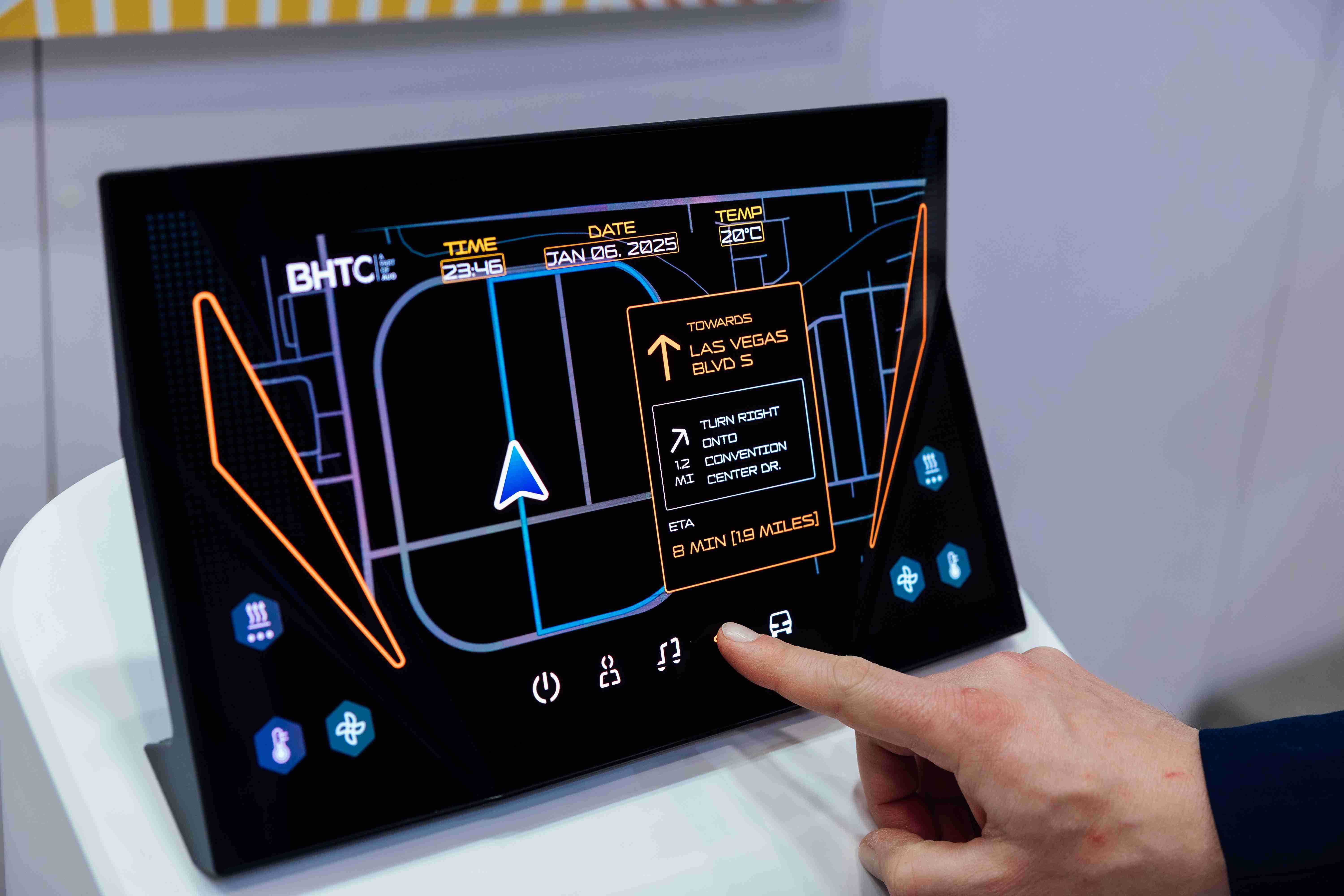 尊时凯龙首次与BHTC于CES共同展出,,,,结合核心显示技术与BHTC强大的车用HMI能力,,,,以匠心独具的互动控制设计,,,展示出贴近乘用者需求的Display HMI 解决方案。。