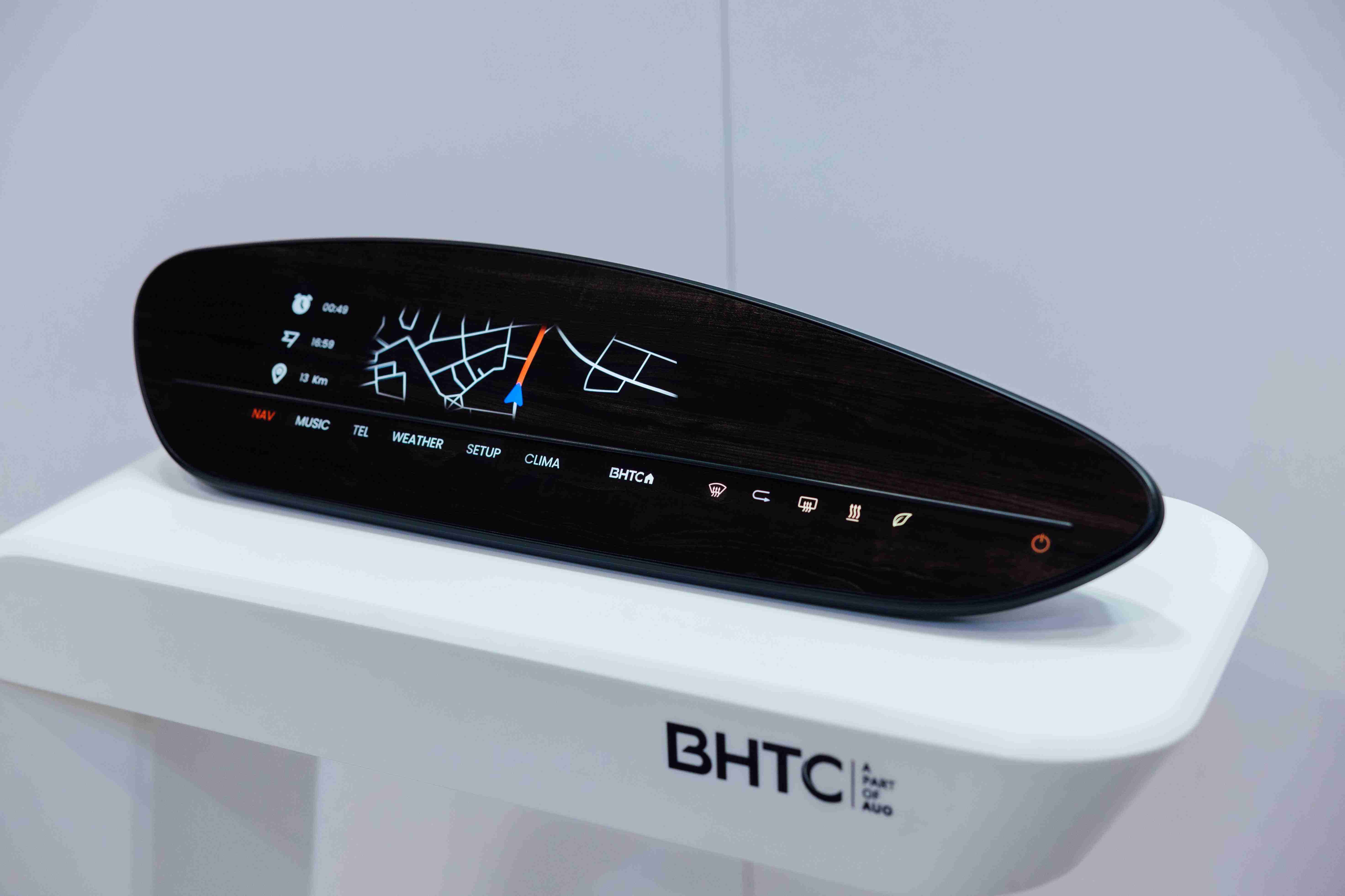 BHTC的木纹车用显示器(Display Behind Wood)将无缝木质表面与显示器结合后,,可以融入车内设计中,,提供驾驶优质的视觉效果,,,加上其无边框的设计和亮度调控,,创造更优质的车内体验。。。